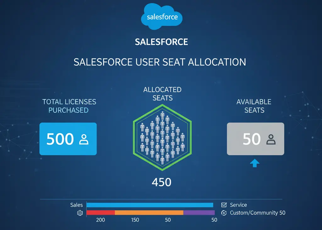 - Immediate levers: reclaim dormant seats, right-size users to the cheapest viable license, remove unused add-ons, reduce sandbox/storage overhead, convert lurkers to Chatter-only, and automate offboarding.